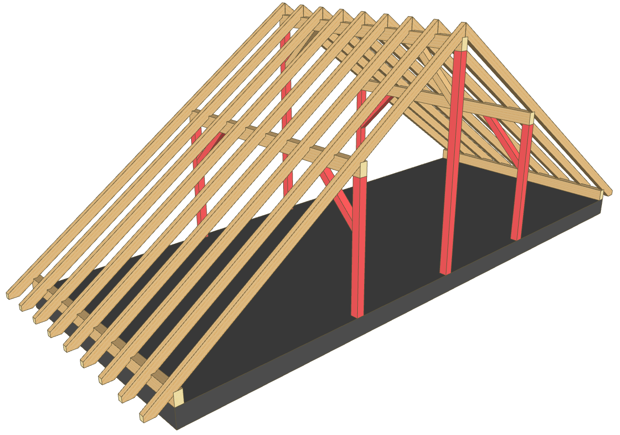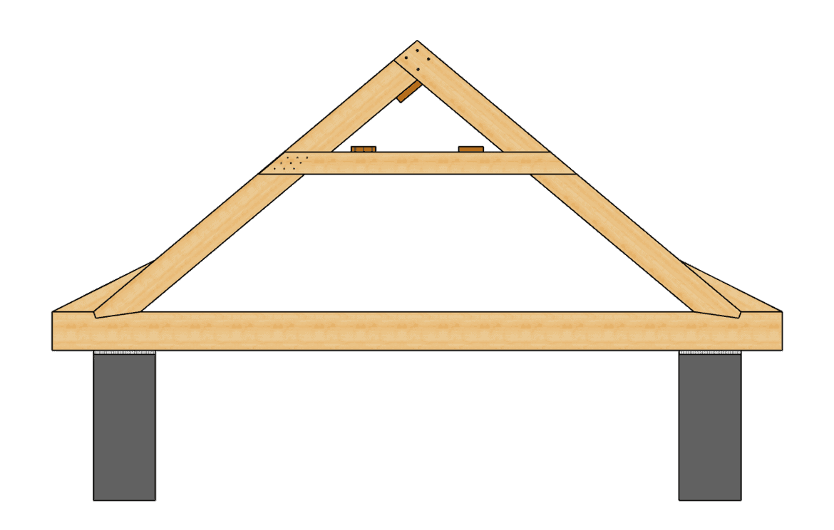 Die einfachste Form besteht aus einer Firstpfette und einer Schwelle. Eine Mittelpfette ist also nicht immer notwendig. Wenn die Spannweite jedoch mehr als 4,50 m beträgt, sollte man eine Mittelpfette einplanen.