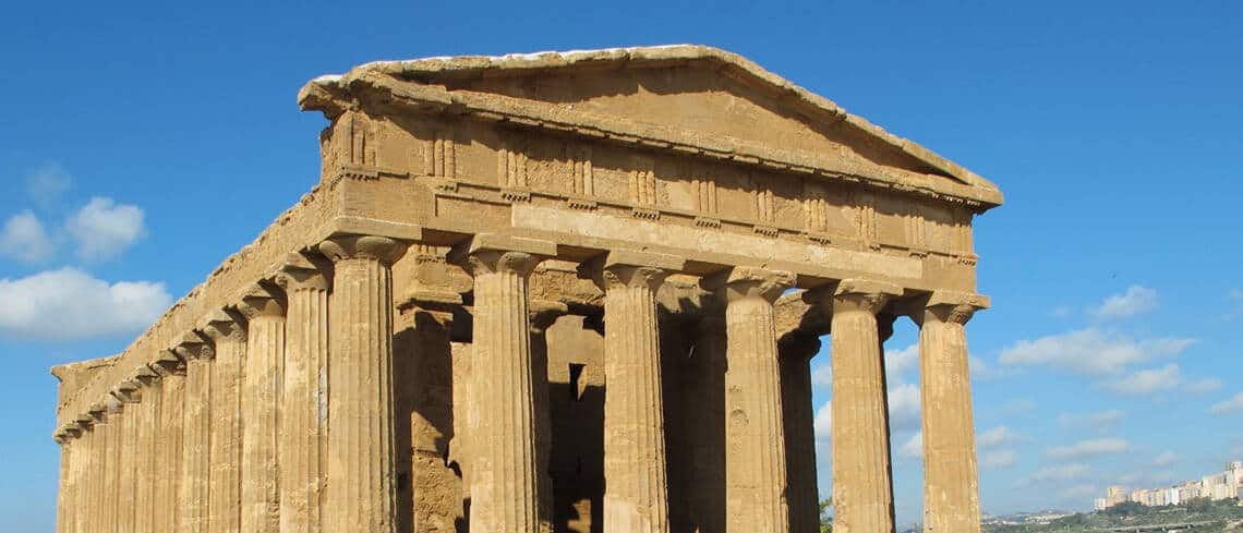 © Manfred Kopka, Agrigento, Dorischer Tempel, zugeschnitten von Samuel Schneider | CC BY-SA 4.0 InternationalUrsprünglich entstand das Pfettendach aus dem Flachdach. Im Mittelmeerraum findet man bis heute die beliebte Flachdachkonstruktion. In dieser Gegend ist auch das Pfettendach entstanden.