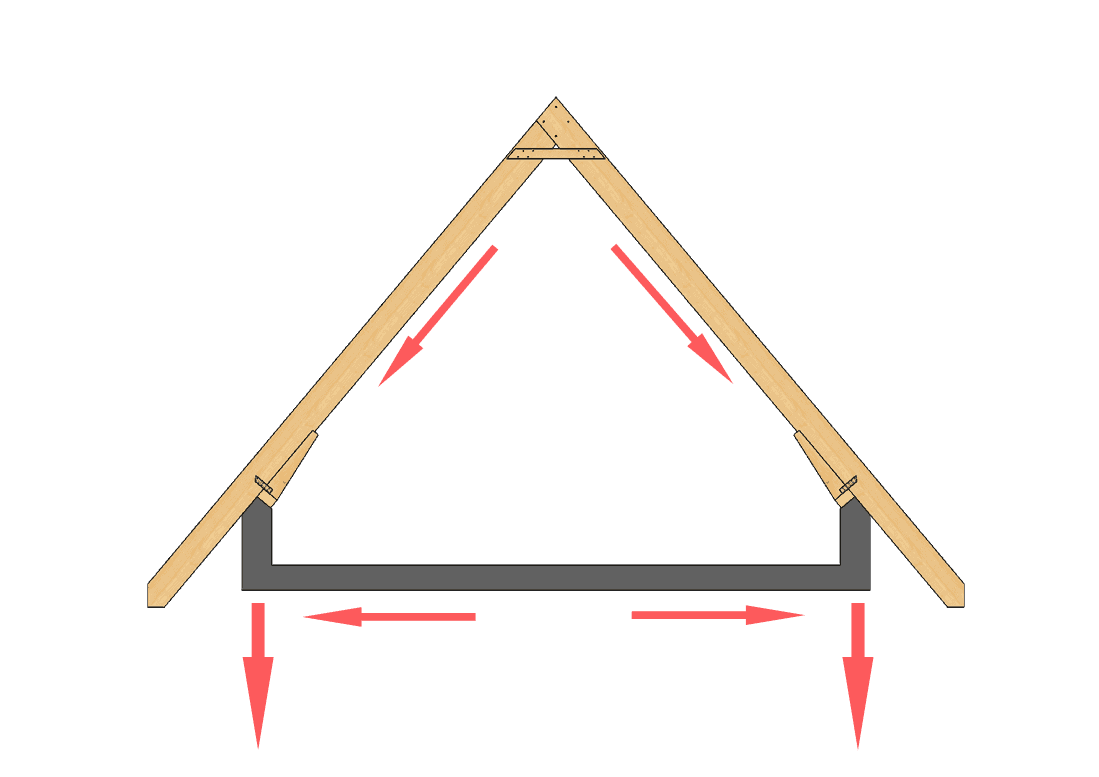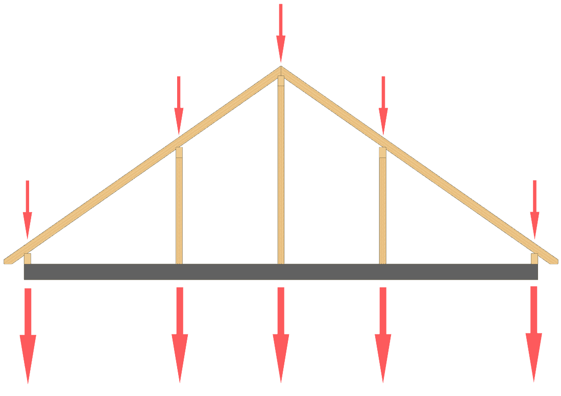 In der nachfolgenden Zeichnung ist ein Sparrendach abgebildet. Die Kräfte werden an die Fußpunkte weitergeleitet.